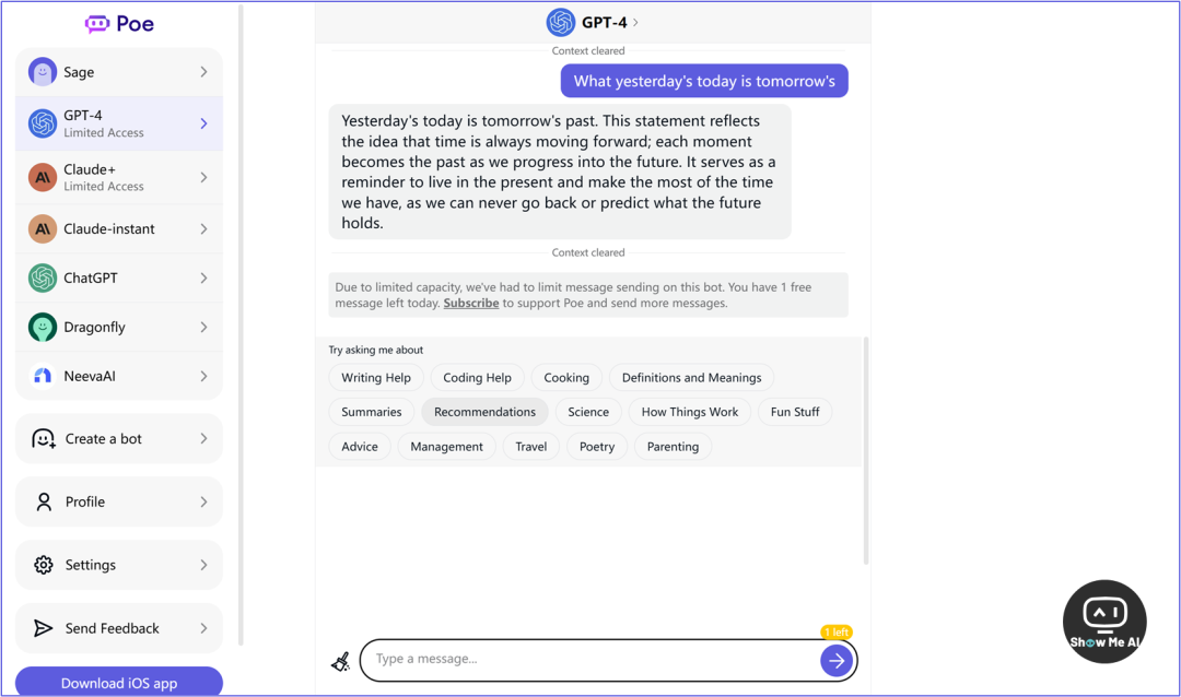 GPT-4每天免费1次,Claude+每天免费3次,其他免费不限量