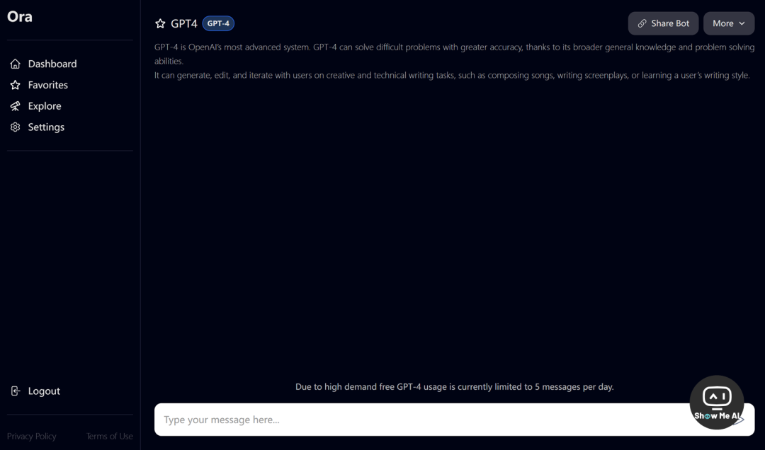 基于GPT-4但是功能做了收束,免费,每轮对话不超过20个问题,每天不超过200个问题