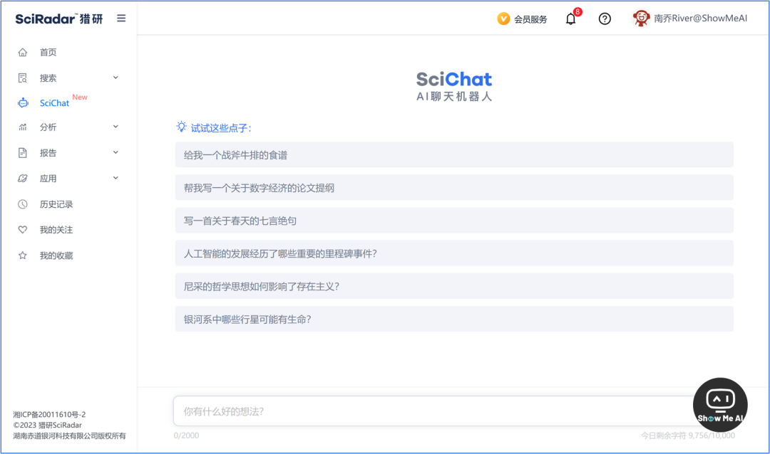 注意:使用英文提问的效果更好;不要在一轮对话中重复提问。
