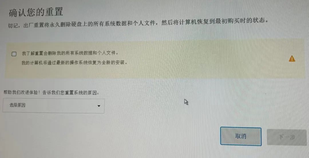 客服说只能进行重置(即恢复出厂设置),重置过程最先有一个备份的步骤,但速度非常慢。因电脑里资料太多,所以慎重地咨询技术小编是否只需备份C盘?