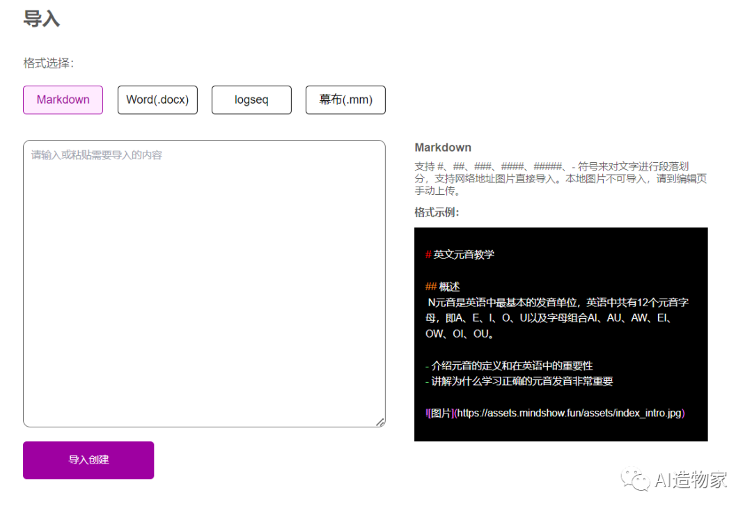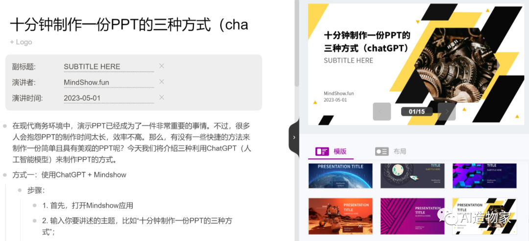 其最大的特点就是支持chatGPT或其他AI输出markdown格式导入生成PPT。