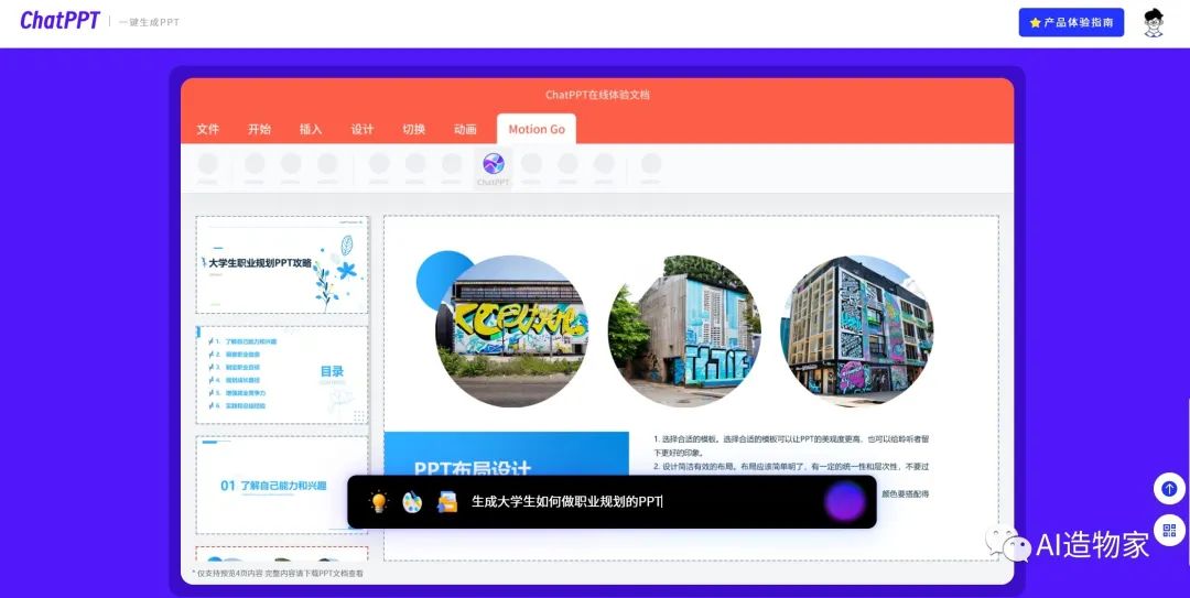 体验ChatPPT需要提交申请,这里展示在线体验的结果;