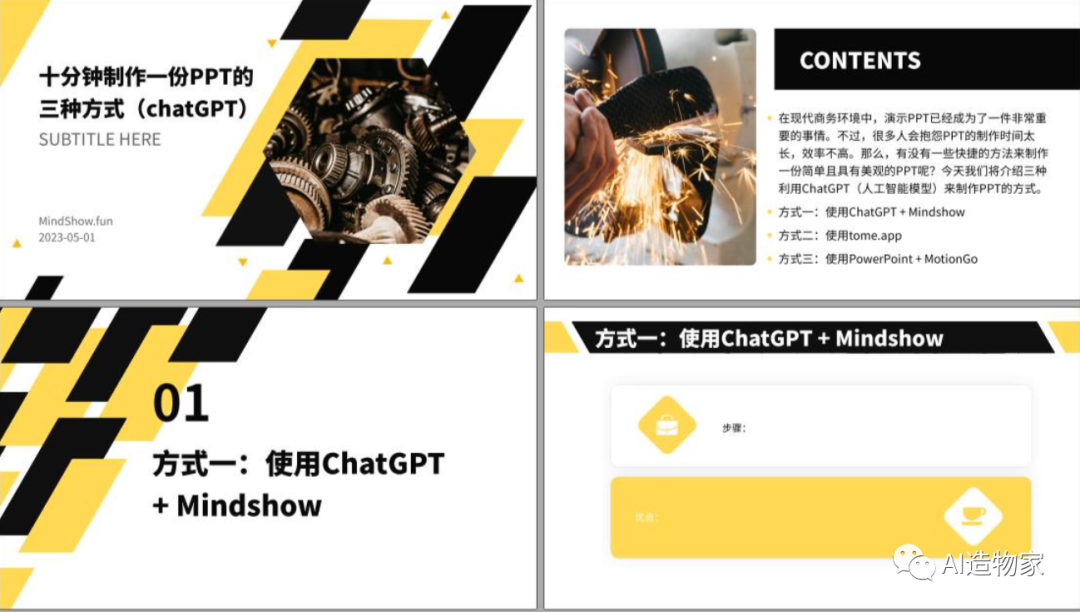 然后把内容给到Tome、 Gamma 等AI工具去生成定制化的PPT,
