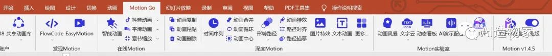 MotionGo 功能更加强大,工具栏智能动画弥补了mindshow生成的PPT无动画的缺憾