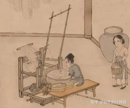 她用的是一架简陋的斜织机,一天到晚“唧唧复唧唧”地响。她织出来的主要是麻布,丝绸那是地主家才穿得起的。女儿小丫就在旁边看,帮着理理线,这是她未来安身立命的根本技能。