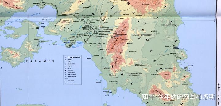 1:150,000 的雅典城,可以看到通往比雷埃夫斯港的长墙