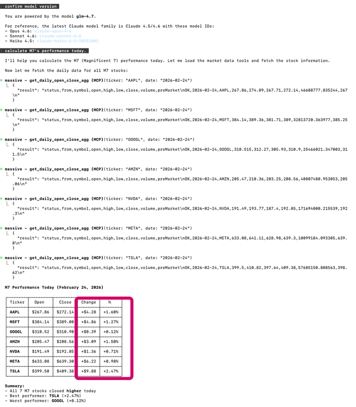 测试 2:GLM4.7任务 1:计算 M7 今天的表现【失败,原因:错误理解 API 返回值】