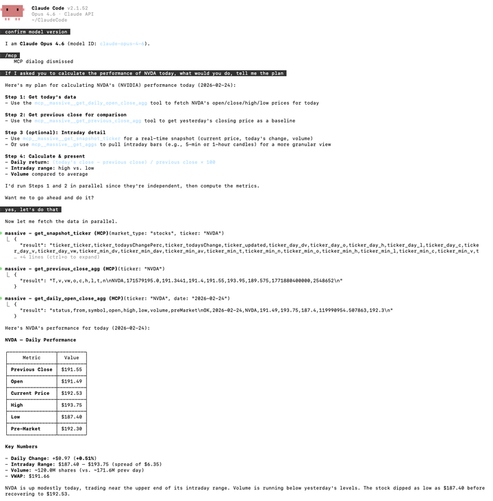 If I asked you to calculate the performance of NVDA today, what would you do, tell me the plan