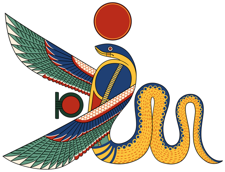 古老一些的文明,比如埃及,他们用「wadjet」一个词涵盖了蓝色、蓝绿色和绿色所有的颜色。这个「wadjet」同时也是埃及神话中一个女神的名字,它的形象是这样的。