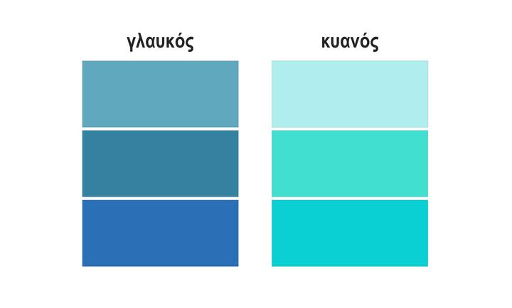 而希腊语更夸张,从古希腊语到现代希腊语过渡过程中,蓝色和绿色的指代整个发生了颠倒。