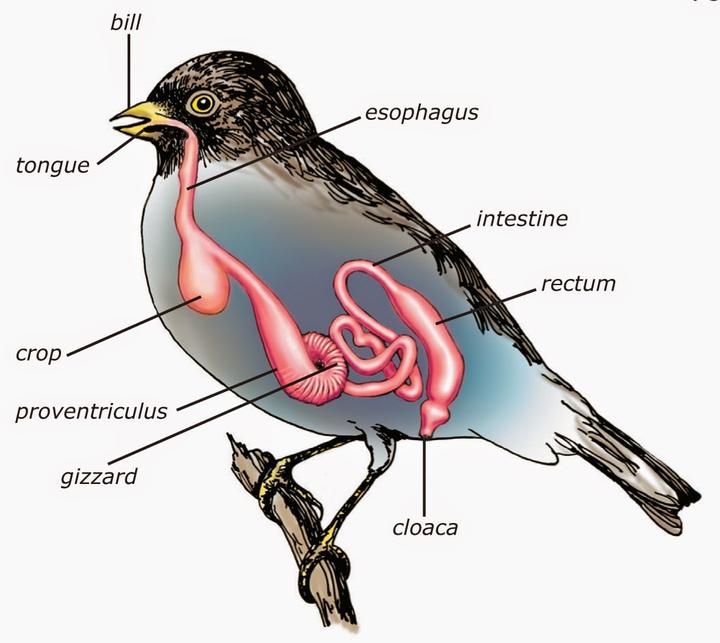 当然,鸟类因为飞行压力,消化道演化得比较短。不过它们的肠道结构,和哺乳动物也非常的相似,明显分为 3 段,第 1 段为十二指肠,第 2 段为小肠,第 3 段为后肠,相当于哺乳动物的大肠和直肠。