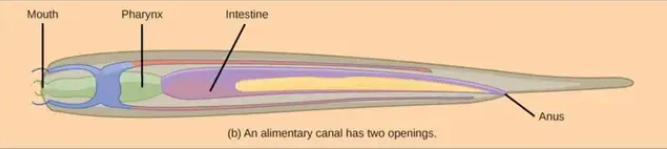 因为消化的需要,消化管发展出了肌肉,从头到尾的结构也不再单一,在形态和功能上都出现了简单的分化。
