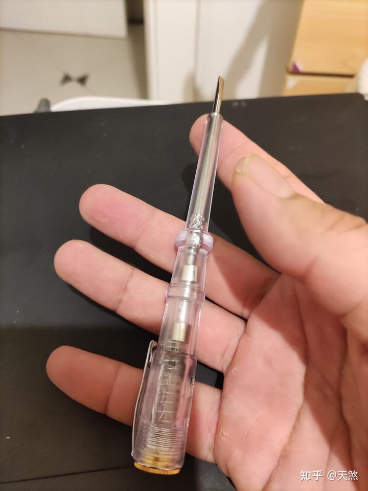 为什么去楼道里面做,是因为我家用的插座都是放误碰的那种,电笔捅不到金属触点。楼道电表箱正合适。