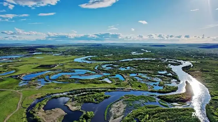 河流、泥沙和植物,在广阔而平坦的土地上,共同绘就了最轻盈的线条。