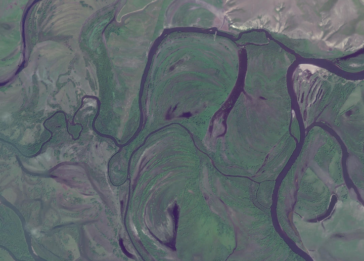 这种景观的形成,源于河流两侧的泥沙沉积不均匀,一侧沉积多,另一侧沉积少,河流就会逐渐偏移原来的河道。
