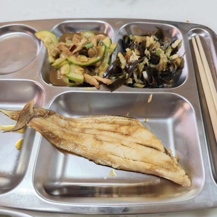 我们船上一共 22 个人,除了早餐外,中午和晚上的正餐,都是三菜一汤的标准。