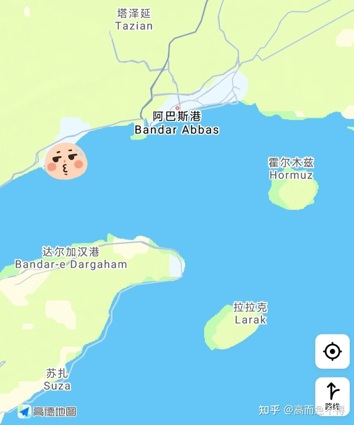 锚地旁边有三个岛屿,最西边的就是霍尔木兹岛,霍尔木兹海峡的守门员,在地图上看是非常小的。