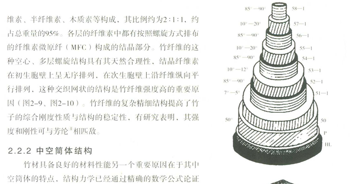 - 管壁外围由粗纤维包裹,受力强度较大,但单体由底部到顶部,强度、直径及竹节间距不平均;