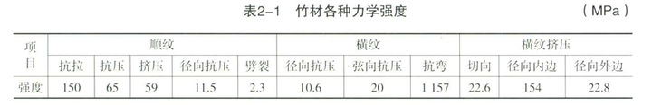- 各向异性极强 + 性能不均,结构风险高:竹材具有质量轻、有弹性以及抗顺纹压力强的优点,但对横纹方向耐受能力较差;见上图的数据。