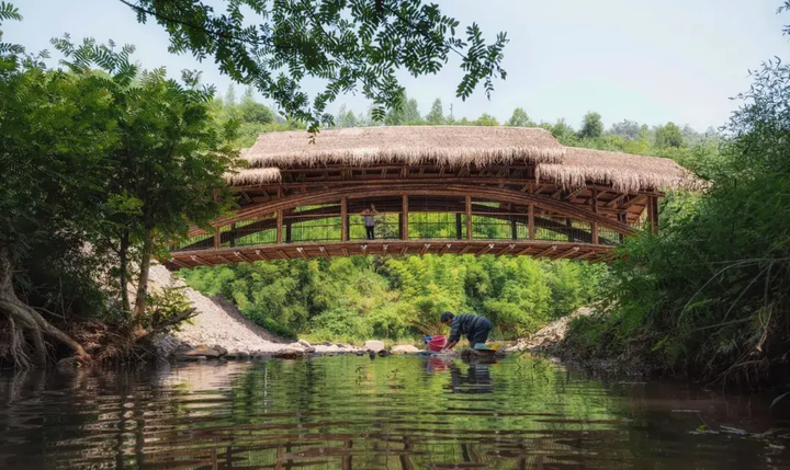 就我个人来说,邵长专为村民建的 4 座“一心桥”最让人感动。其中 2018 年建设的 1 座获了英国皇家建造师学会(RICS)奖。竹桥跨度 21 米,由 716 根毛竹做成。成本低廉、性能完全满足村民日常出行。当地村民非常喜欢这座竹桥,还自发在桥上建了一个小神龛。竹桥成了村民初一、十五来活动的桥庙,完全融入村民的生活。而不是像很多竹构景观,其高大上的异质文化造型,突兀的闯入当地环境。
