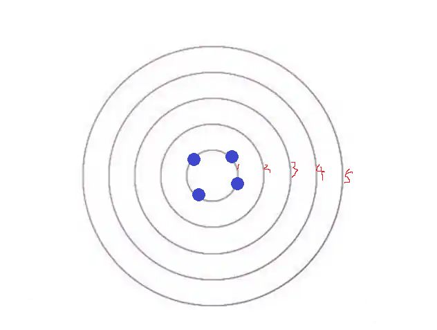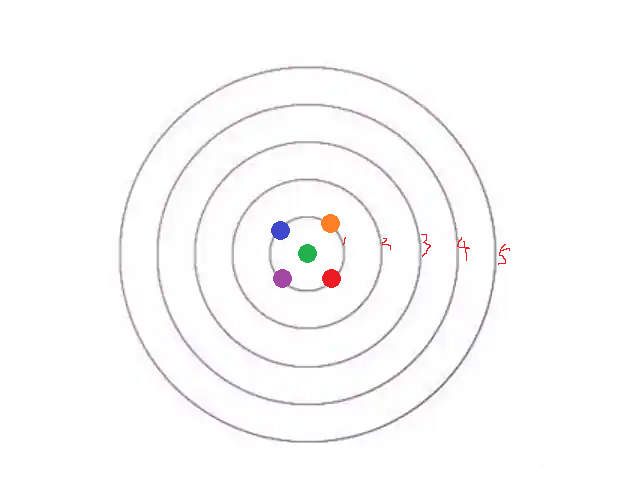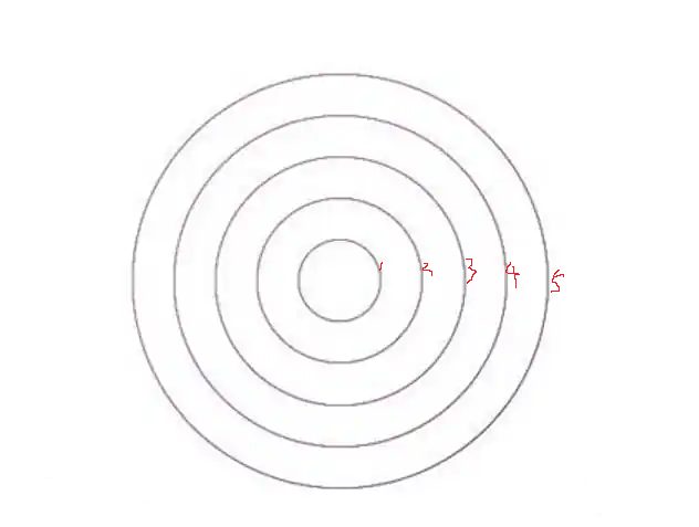 如上图,墨水大概会在 t1 的时刻、近乎同时的铺满圆 r1;然后在 t2 时刻、近乎同时的铺满圆 r2……依次类推,直到铺满 r5,对吧。