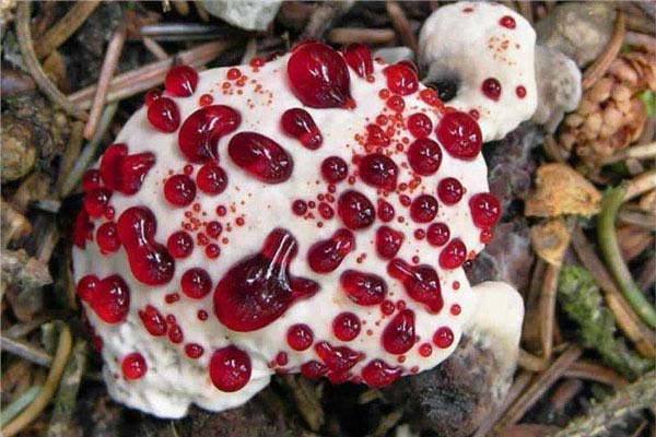 比如血齿菌(Hydnellum peckii)菌盖能渗出鲜红色液体,用于防御昆虫啃食。
