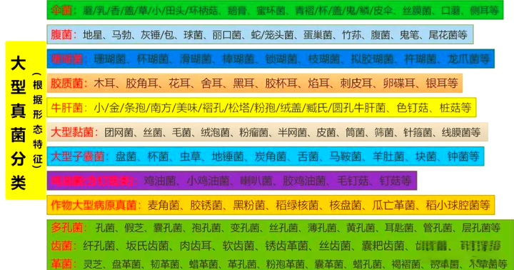 食用菌单按长相就可分出 7 大类,约 30 种典型形态。
