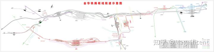 这一思路被很好地贯彻到了金华⇌义乌枢纽。无论是金义ⅢⅣ线还是杭温高铁工程都强调了双向跨线的必要性。杭温配合金义ⅢⅣ线能起到在沪昆高速线 / 杭温高速线之间双向互联互通,这让杭州东有能力发往横店的车,也能让杭州西始发的列车直达金华杭长场(虽然工程里没有,但是现实改造东孝站很简单)。与湖州类似,在金义的疏解同样是根据列车在杭州所选的办客车站分配经由,经过预疏解后选择运行线路。