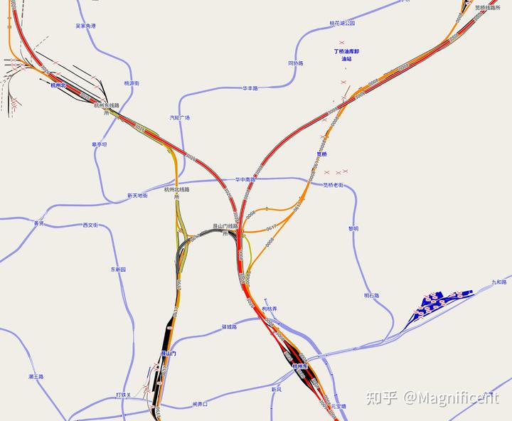 绍兴北的疏解方案较为简单,但毕竟是民营资本参与的第一条高铁,为了“降本增效”和更多利润,简化一些看上去“没必要”的设计也并非不可取。此外绍兴北仍新增了杭台场,规划与杭州机场高铁正线对接,目前仍处于断头状态。PS:绍兴北杭深、杭台两场之间存在细小的夹角,不仔细看很难看出来。