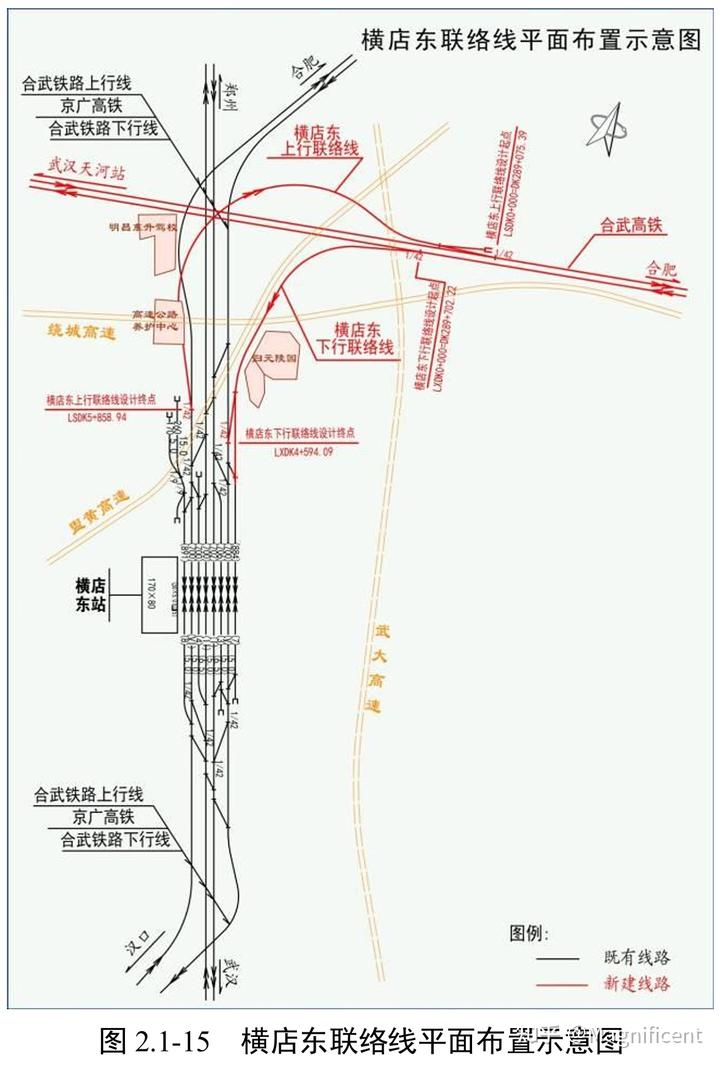 为实现宁蓉线列车进武汉站、京广高速线列车进汉口的需求,两线在横店东按方向别接入,前往武汉、汉口站的列车可分别使用京广高速线、宁蓉线前往。此后的沪渝蓉工程也新建了联络线接入横店东北咽喉,不过要对大改车站配线。