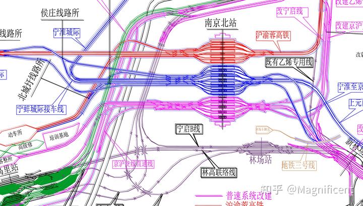 老问题也随之而来:既然要选择改造既有车站,那么就得承担“利用既有”的后果。郑州东将徐兰场“切成两半”的操作对于徐兰高速线本线的列车而言相当不友好:本身徐兰场偏小,这一来能办客的站台就更少了,徐兰高速线可能面临着无站台可用的窘境,甚至频繁产生机外停车问题。南京南也如此。现行设计过分占用了杭宁高铁南京南所⇌江宁的区间运能,导致行车密度居高不下。更好笑的是在探讨引入方案的论文中,现行方案居然是论文中的“舍弃方案”。