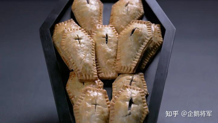 下图是今天的人恶搞,将 coffin 的双重含义结合起来了:棺材形状的派壳!!!