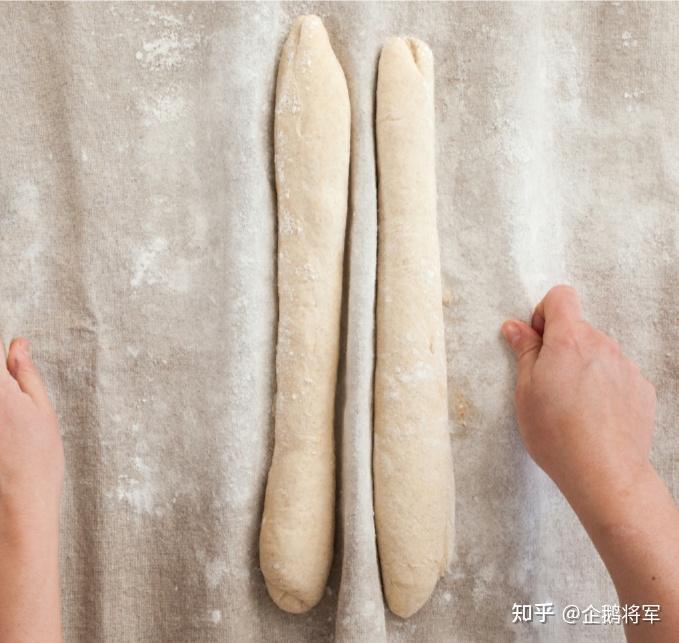 据说,只有 100%纯亚麻布才能让面团在不粘连或不被拉扯的情况下顺利脱模。我只有棉制的发酵布,所以做不出漂亮法棍吧……哈哈。
