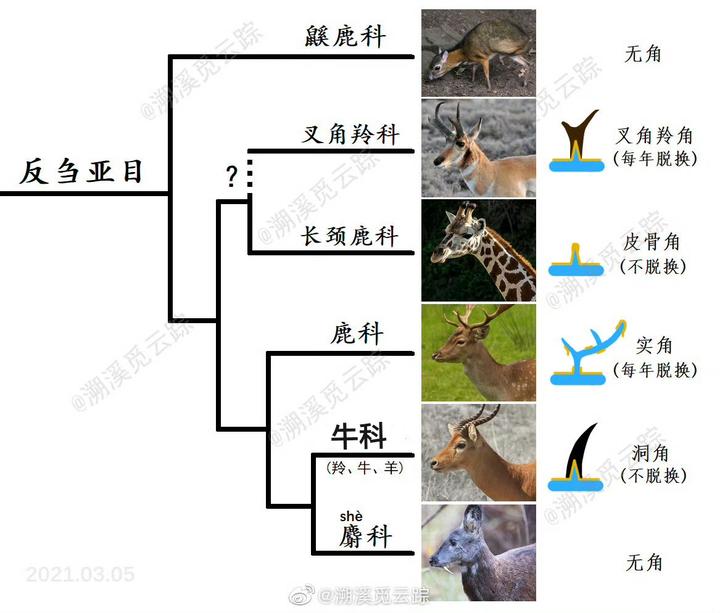 然后,现今牛科的大多数分支还是“羚”,就连牛科内部和牛关系最近的牛亚科里,也有很多“羚”,所以,应该说“牛是羚的一支”,而不是反过来。