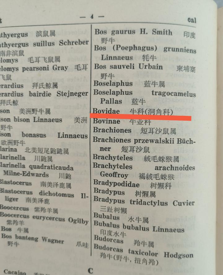 那么问题来了,科名一般都是模式命名法,为什么偏偏牛科的名字有点别扭,而猫科、犬科、鹰科、熊科、鼬科这些就显得很正常呢?
