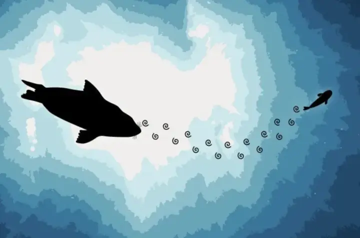 潜艇留下的痕迹只有狭窄的水流通道,并且超过 20 秒后,水流的轨迹就会慢慢消失。这些水流痕迹模仿了鱼类游动留下的涡旋,像隐形的足迹,肉眼无法捕捉。