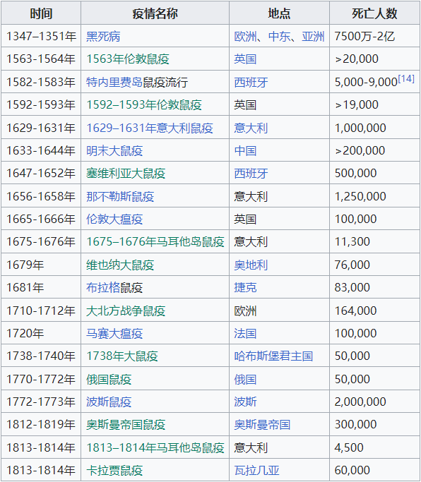 纵观整个人类疫情史,对于有比较明确致病原的疫情,鼠疫至少占到半数以上,而且常常成为人口折损达到 30%以上的大杀器。