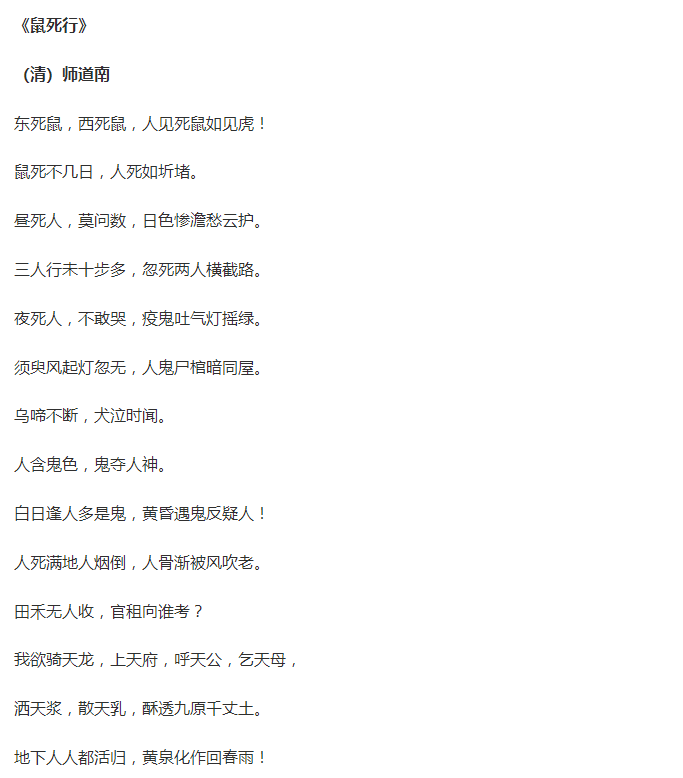 东死鼠,西死鼠,人见死鼠如见虎。鼠死不几日,人死如圻堵——《鼠死行》