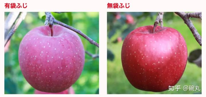 套袋和无袋富士苹果的比较。via:ringodaigaku.com