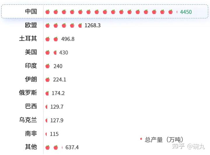 2022 年全球苹果产量 top10 国家 / 地区。数据来源:美国农业部数据库;制图:云果产业大脑。