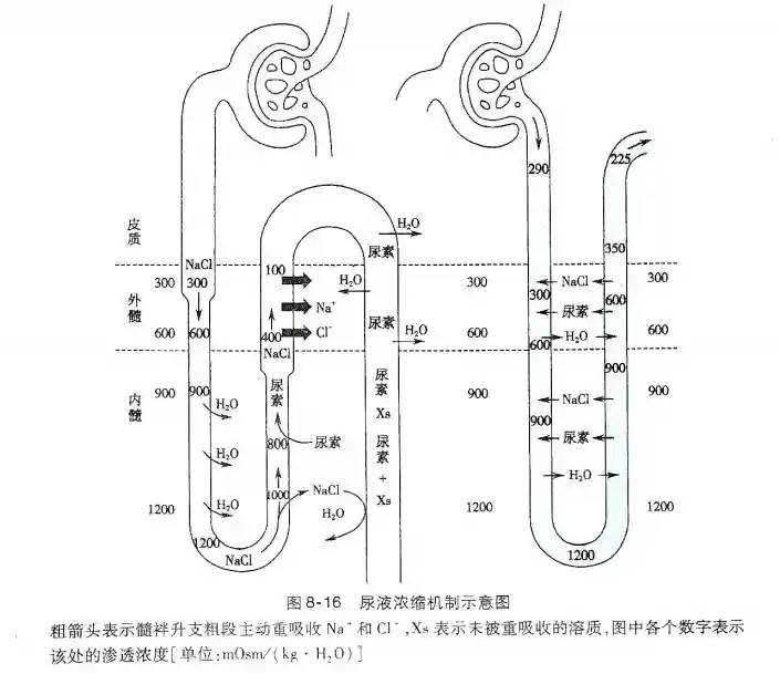 可以利用逆流倍增机制(Countercurrent Multiplication Mechanism)把尿液里的水分重新吸收、