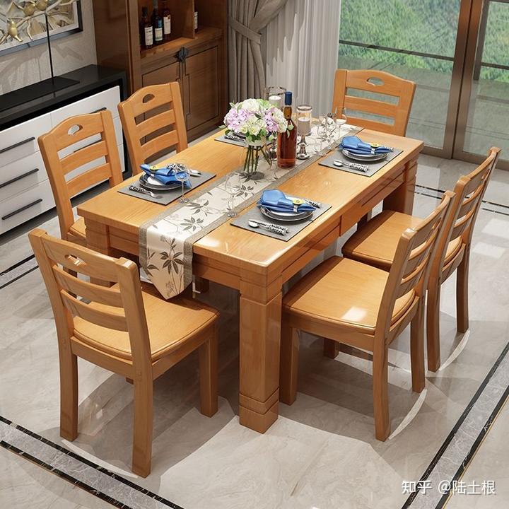 故而城镇家庭,一直是四人方桌、六人长桌为主,因为他们可以在面积不够时靠墙摆放,节约出很大的面积。