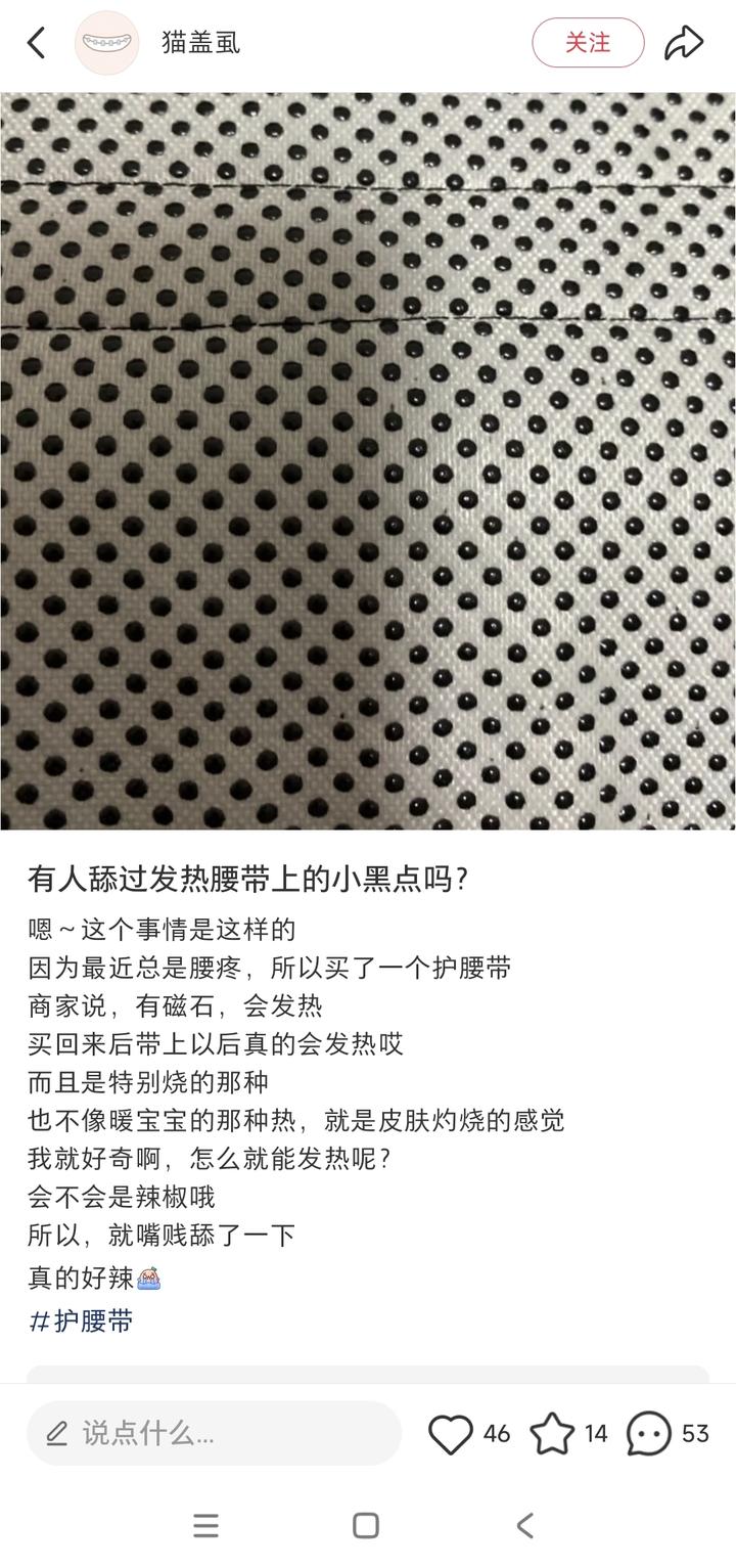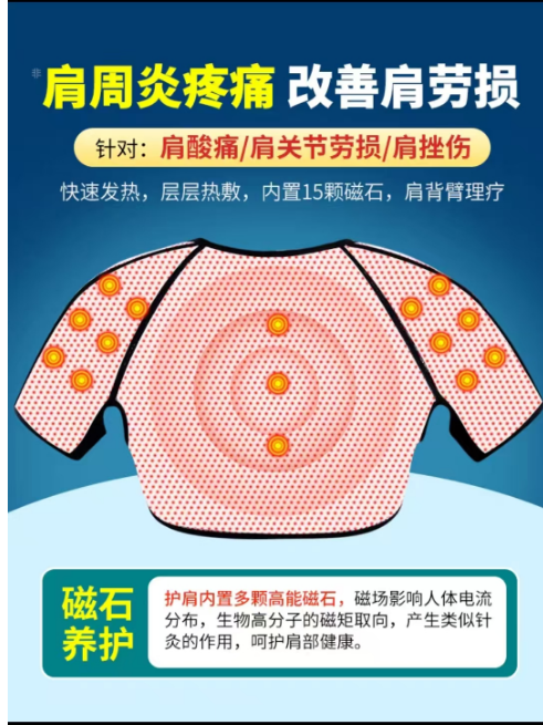 厂家宣传这种不需要插电就能发热的理疗肩带 / 护膝等,它标注是磁石发热,其实就是辣椒素……让你一直有灼烧感,根本不什么黑科技违背热力学定理的磁石,望天~