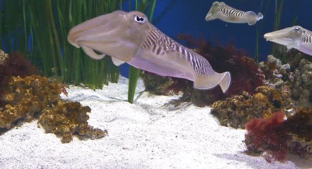 运动的话主要依靠外套膜收缩 + 喷水高速移动,一般生活的海域比较远。