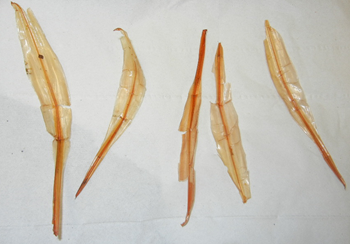 产籽多,以山东常见的笔管鱼(日本枪乌贼 Loligo japonica)来说,还没手掌长,每只雌性却能产 2000-3000 个卵。