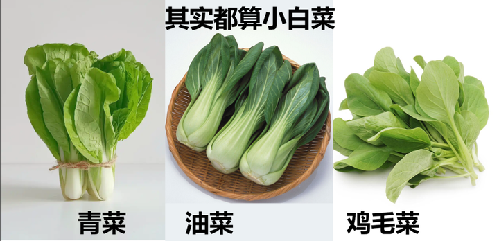 好多人说分不清油菜青菜鸡毛菜,其实都算小白菜(非结球变种)。