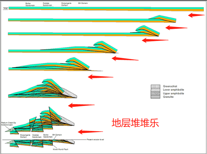 地球上很多大型造山带,背后的机理都可以简化成两边的地层互怼,地层之间发生断裂,彼此堆叠,牺牲横向的距离,换取垂向的高度。比如,喜马拉雅山什么的,也可以叫它印度和欧亚之间的地层堆堆乐游戏。