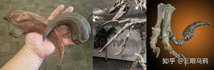 第二脚趾上的镰刀爪长约 22-24 厘米,是它捕猎的主要杀伤武器。全身骨骼粗壮且尾巴结构强劲,有助于在捕猎过程中稳定身体并释放爆发力。