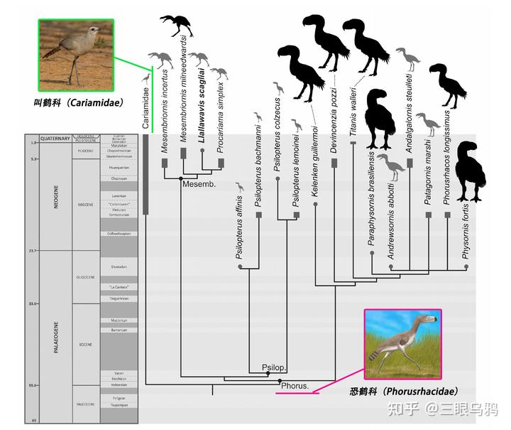 现生与恐鹤(Phorusrhacidae)关系最近的鸟类是叫鹤科(Cariamidae)。