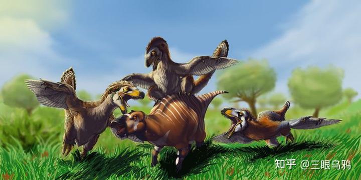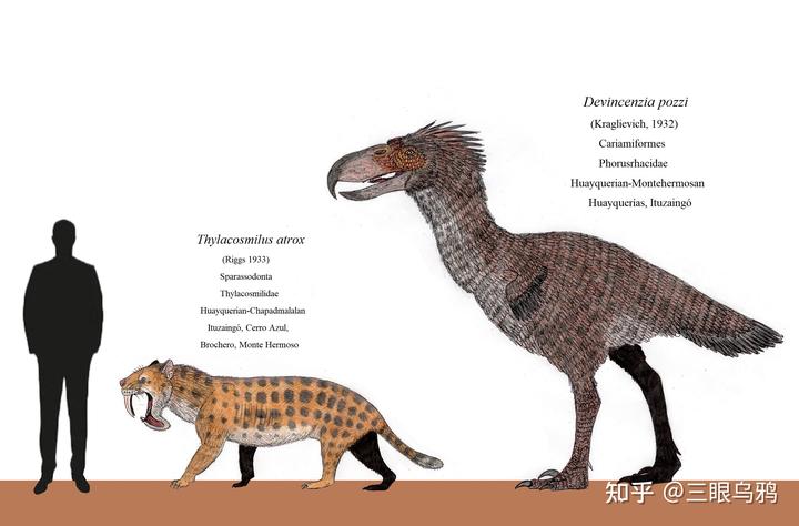 恐鹤(Phorusrhacidae)就是这样一个惊人的例子,它们几乎完成了恐龙未竟的事业,从肉食性、地面活动以及逐渐走向大型化这三个方面,都与中生代的兽脚类恐龙演化过程高度相似。